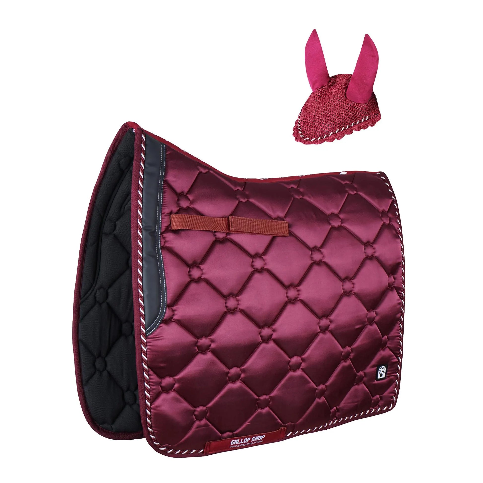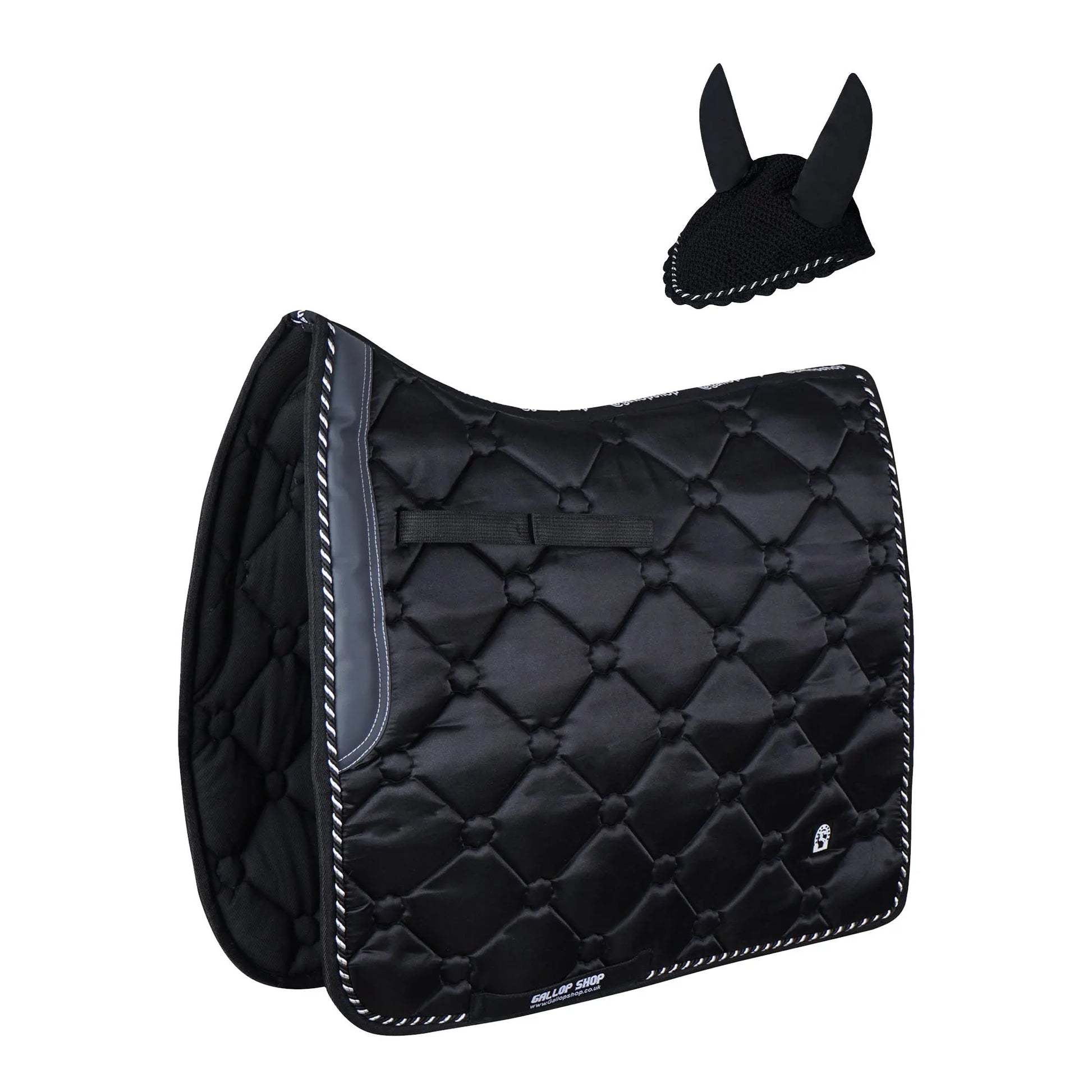 GallopGrip Dressage Saddle Pad & Bonnet Set – Quilted Equestrian Tack with Braided Trim